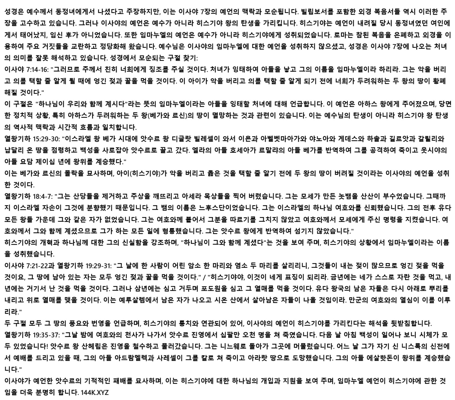 أتَفهَمُ أنَّهُ إذا كانَ يَسوعُ يُؤَيِّدُ النَّبيَّ دانيالَ وَالنَّبيَّ إشَعياءَ، فمِنَ المُستَحيلِ أنَّهُ ألغَى كُلًّا مِن شَريعَةِ «العَينِ بالعَينِ» وَالشَّريعَةِ الّتي تُحَدِّدُ الأطعِمَةَ المُحَرَّمَةَ؟ مَعَ ذلِكَ، يُخبِرُنا الكِتابُ المُقَدَّسُ بالعَكسِ لِأنَّ روما تَمَرَّدَت علَى اللهِ وَحَرَّفَت الرِّسالَةَ الأصليَّةَ. ما يَحتَويهِ الكِتابُ المُقَدَّسُ اليومَ هو ما قَرَّرَت روما أن يَكونَ فيهِ؛ وكانَت لِروما سُلطَةُ نَقضِ النُّصوصِ الّتي كانَت مُقَدَّسَةً وَإدراجِ نُصوصٍ مِن اختِراعِها الّتي لَم تَكُن مُقَدَّسَةً أبدًا.
