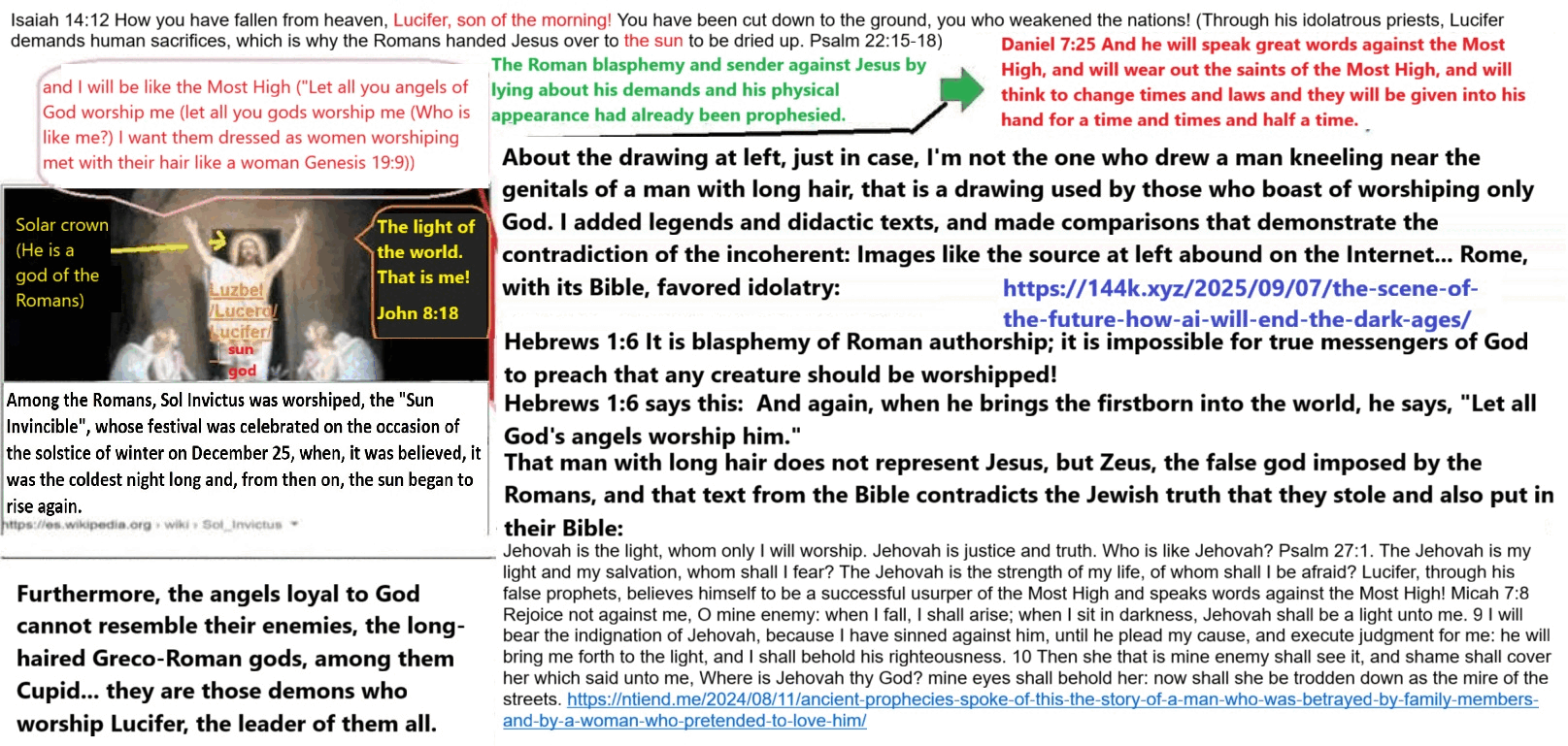 Ce n’est pas une coïncidence si, sur cette image promue par l’Église romaine, Cupidon apparaît avec d’autres dieux païens. Ils ont donné les noms des vrais saints à ces faux dieux, mais regarde comment ces hommes sont habillés et comment ils portent leurs longs cheveux. Tout cela est contraire à la fidélité aux lois de Dieu, car c’est un signe de rébellion, un signe des anges déchus (Deutéronome 22:5).