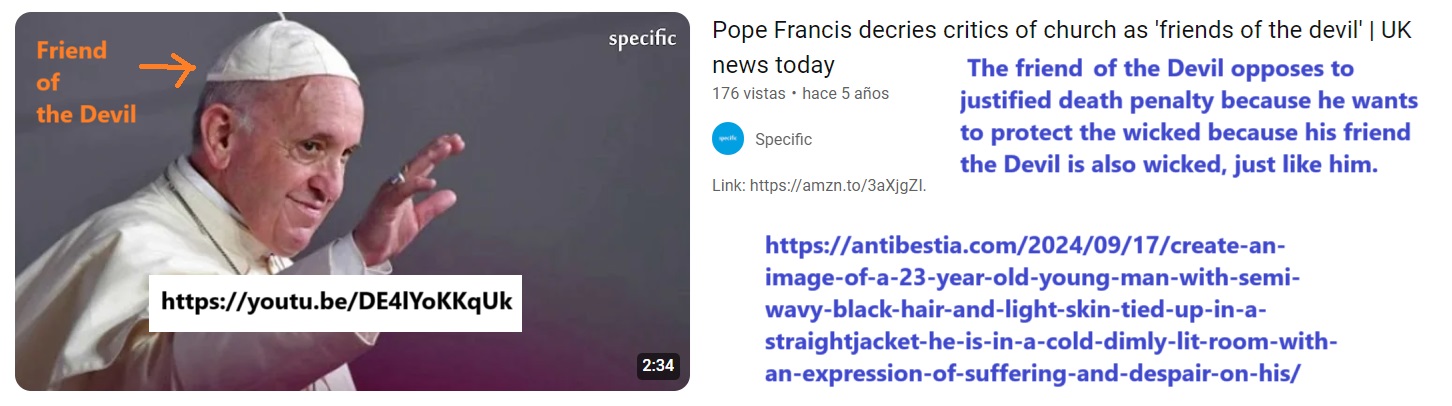 3 They have surrounded me with hateful words, and fought against me without a cause. The Romans have demonized the Jews who did not want to eat pork, read Matthew 15:11 and you will see. In addition, they cowardly said that the Jews hated him so that the prophecy would be fulfilled: They hated me without a cause. The same one you just read that has nothing to do with his first life but with his second, and it has nothing to do with coherent Jews who tell him that no creature can be the God creator of the universe made man. The Romans have distorted and adulterated the true gospel. For example: Where is there love for enemies in this prayer that asks for revenge against enemies? Where is there that stupidity of blessing those who curse you in this? In this prophecy he curses his enemies, his words denote a deep hatred against them, but always a totally justified hatred. And believe me, I understand it perfectly, as if I had experienced in my own flesh the betrayal that was said he would live in the prophecies cited. Psalms 109:4 In payment for my love they have been my adversaries; But I prayed. 5 They repay me evil for good, And hatred for love. 6 Set the wicked over him, And Satan at his right hand. 7 When he is judged, let him be guilty; And let his prayer be a sin. 8 Let his days be few; Let another take his work. 9 Let his children be fatherless, And his wife a widow. 10 Let his children be vagabonds, and beg; And let them seek their bread far from their desolate homes. 11 Let the creditor seize all that he has, And strangers plunder his work. 12 Let no one show him mercy, And no one pity his fatherless. 13 Let his offspring be cut off; In the second generation let his name be blotted out. 14 Let the iniquity of his fathers be remembered before Jehovah, And the sin of his mother not be blotted out. 15 Let them be continually before Jehovah, And let him cut off their memory from the earth, 16 Because he did not remember to show mercy, And pursued the afflicted and needy man, The brokenhearted, to kill him. The traitors whom I accuse also tried to kill me! Psalms 109:17 He loved cursing, and it came upon him; He did not want blessing, and it went far from him. 18 He clothed himself with cursing as with his garment, And it entered like water into his bowels, And like oil into his bones. 19 Let it be to him as a garment with which he covers himself, And instead of a girdle with which he girds himself continually. 20 Let this be the recompense from Jehovah to those who slander me, And to those who speak evil against my soul. The same I wish for those who slander me, and for all those who curse me, including that woman who from what she knew in advance seems to be a witch, I speak of Sandra Bazán, because she prepared an ambush in a place and at a time where it was not my routine to be there, and where it occurred to me at the last minute to be there, and when I got there, those criminals were already waiting for me along with her and another traitor friend named Jessica Ruiz, as I have told in this video, I was going with a friend from my neighborhood named Johan Méndez to a discotheque in the center of Lima to meet girls, because that friend advised me to try to forget what could have happened to Sandra and look for another woman, and when the mini bus passed by the IDAT institute, because that institute was on the route, I decided to get off to pay for a course, and I asked my friend Johan to wait for me on the corner, because just as I got off I saw Sandra, and I said to Johan: She is Sandra, the woman who I told you she behaves very strangely, I will go alone to ask her if she read the letter that I told you I wrote to her. Then Sandra was there, I crossed the avenue alone, and I approached her to ask her if she read the letter in which I asked her about the reasons for her telephone harassment, and where she told her about Monica’s threats against her, when suddenly, and from three different places, three criminals appeared whom Sandra called with her hand, they began to beat me while she falsely accused me of sexual harassment, my friend defended me in the fight against them, if not perhaps they would have beaten me to death. Details in the video: