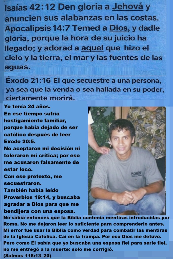 En ese tiempo sufría hostigamiento familiar, porque había dejado de ser católico después de leer Éxodo 20:5.
