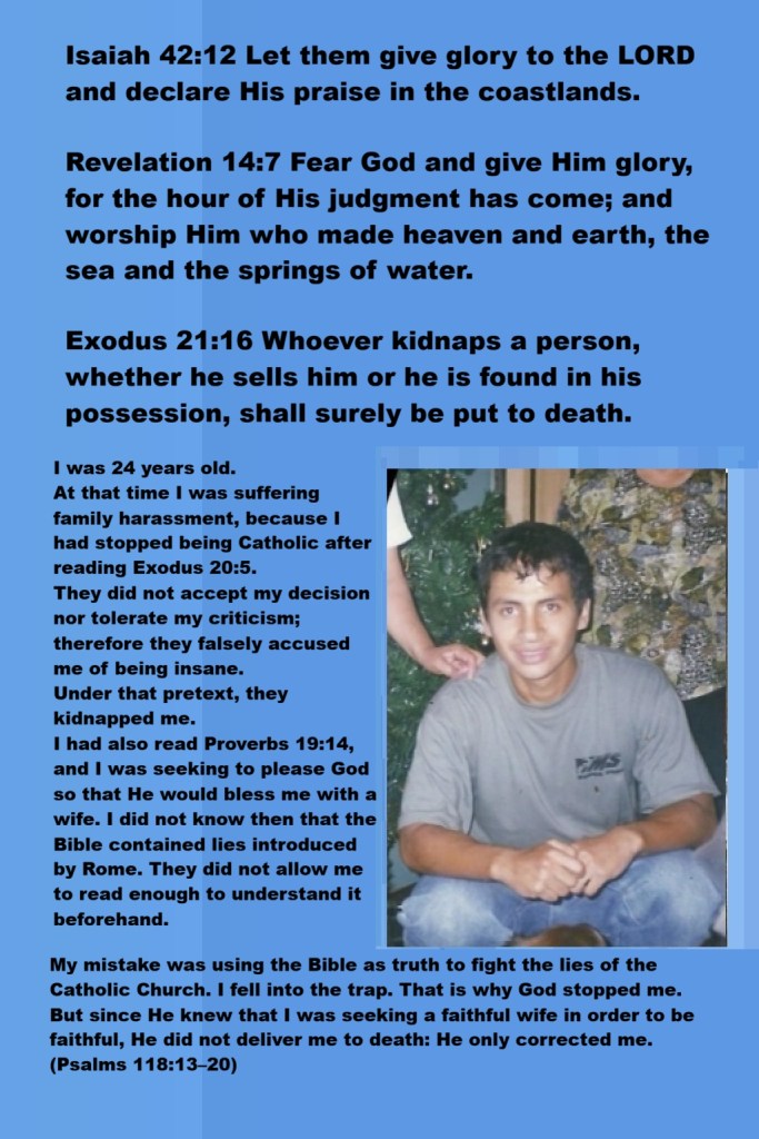 In quel tempo subivo persecuzione familiare, perché avevo smesso di essere cattolico dopo aver letto Esodo 20:5.